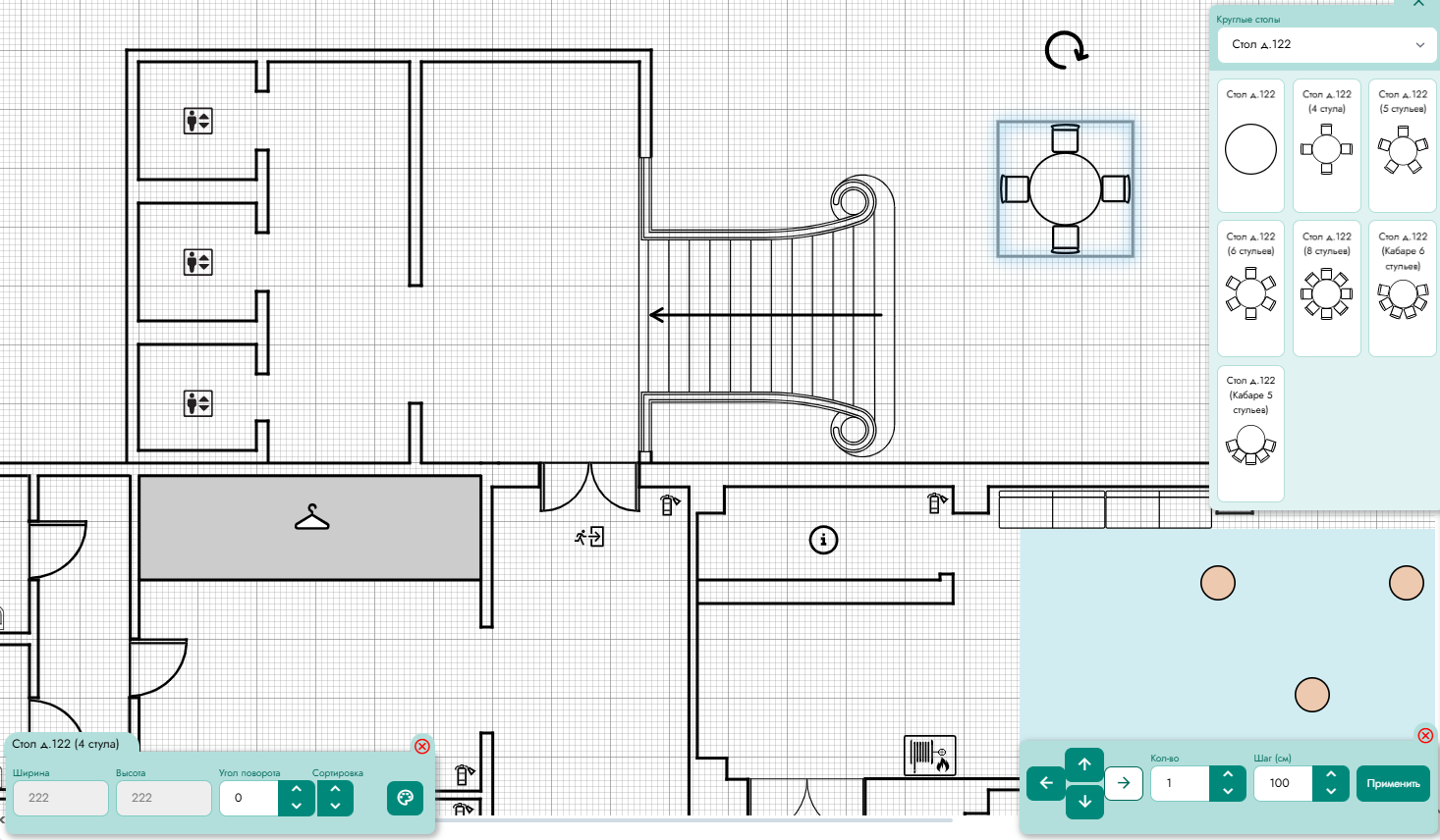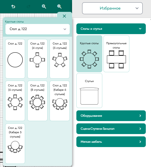 В режиме редактирования плана зала инструменты сгруппированы в верхнем меню (Рисунок 9).