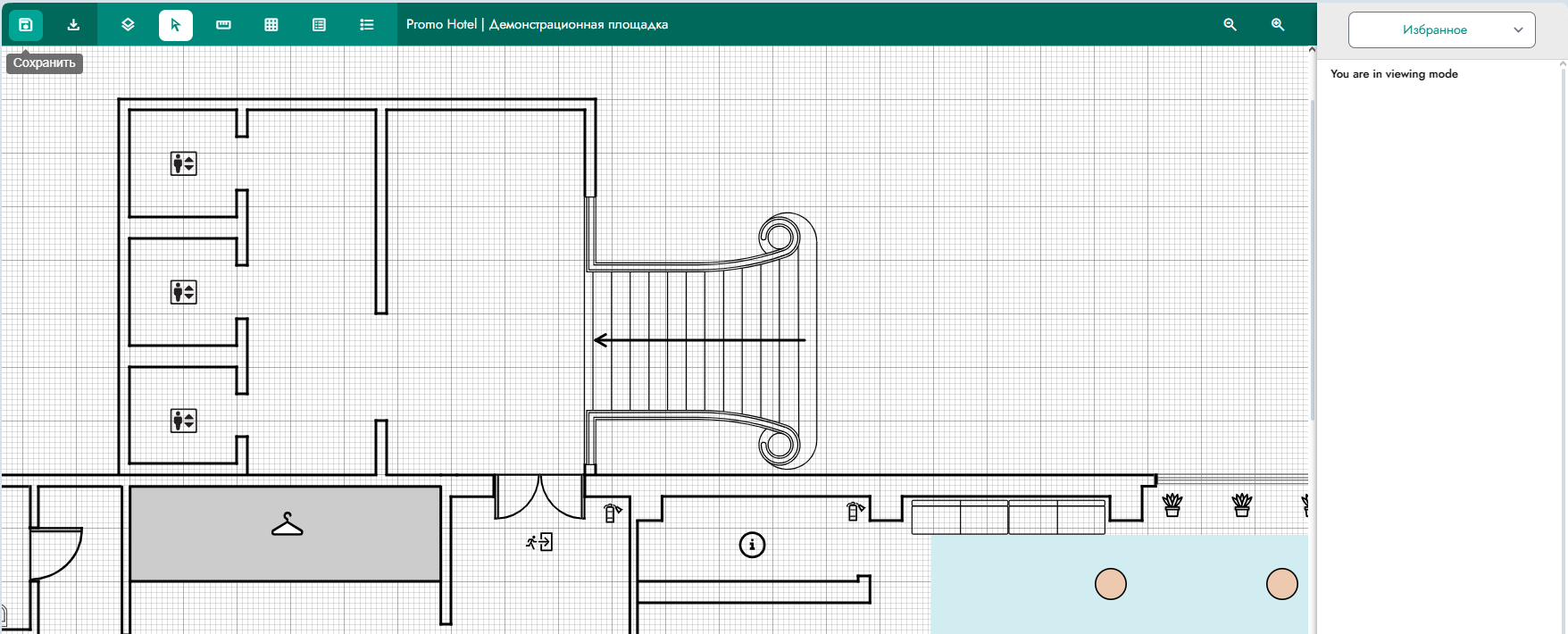 В режиме просмотра плана зала доступны те же элементы, за исключением элементов редактирования (Рисунок 12).